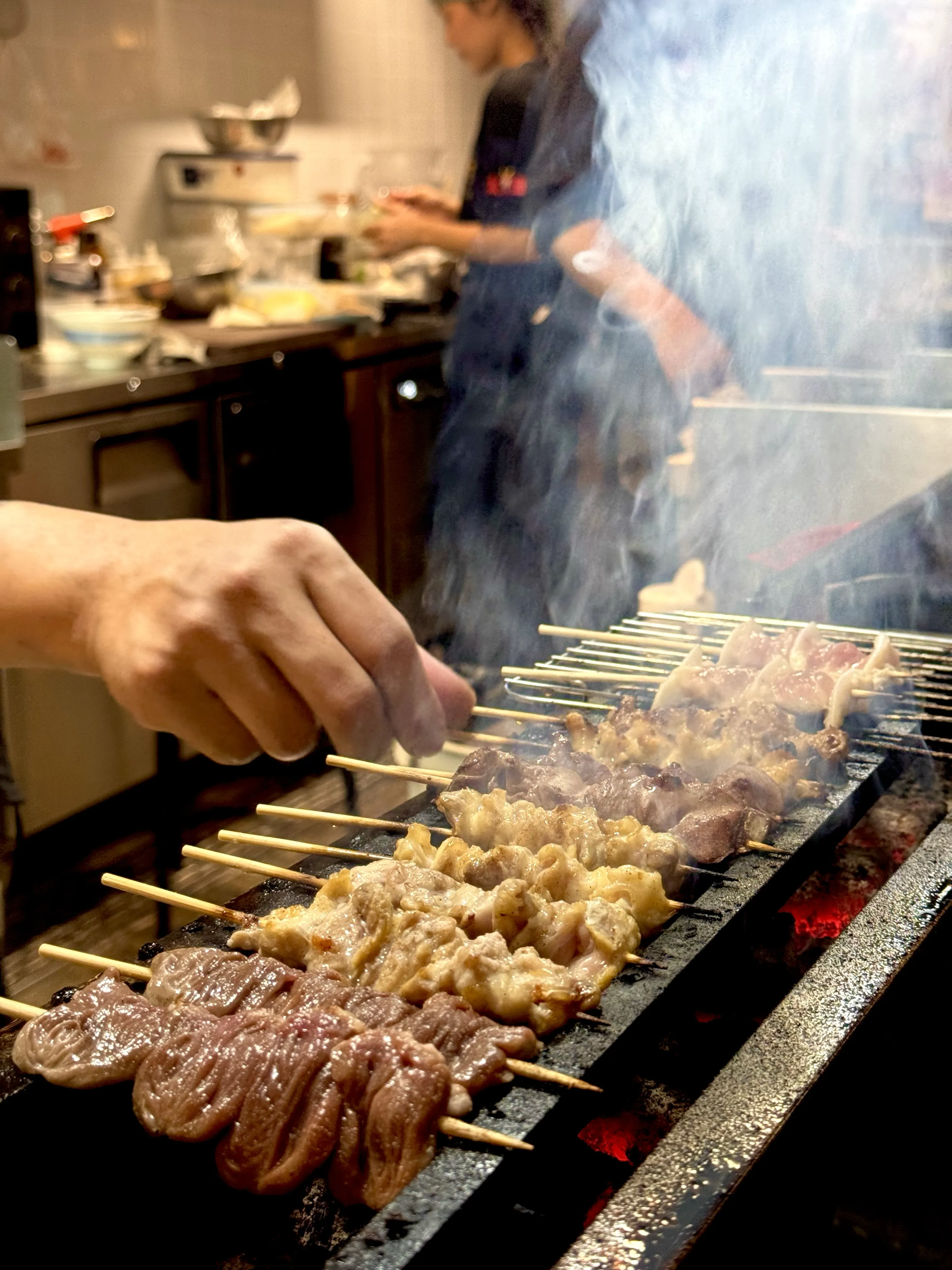 ย้อนกลับไปในสมัยเมจิ จนถึงยุคโชวะ ยากิโทริเริ่มแพร่หลายจากร้านแผงลอยข้างทาง หรือ ยาไต (屋台) ที่ตั้งเรียงรายตามสถานีรถไฟ 🏮 กลิ่นหอมของการย่างไก่ด้วยถ่านไม้ หรือ ซูมิบิ (炭火) กินคู่กับเครื่องดื่มๆ หรือสาเกสักจอก 🍶 กลายเป็นวัฒนธรรมการกินดื่มที่เรียบง่ายแต่เปี่ยมไปด้วยความสุข ❤️